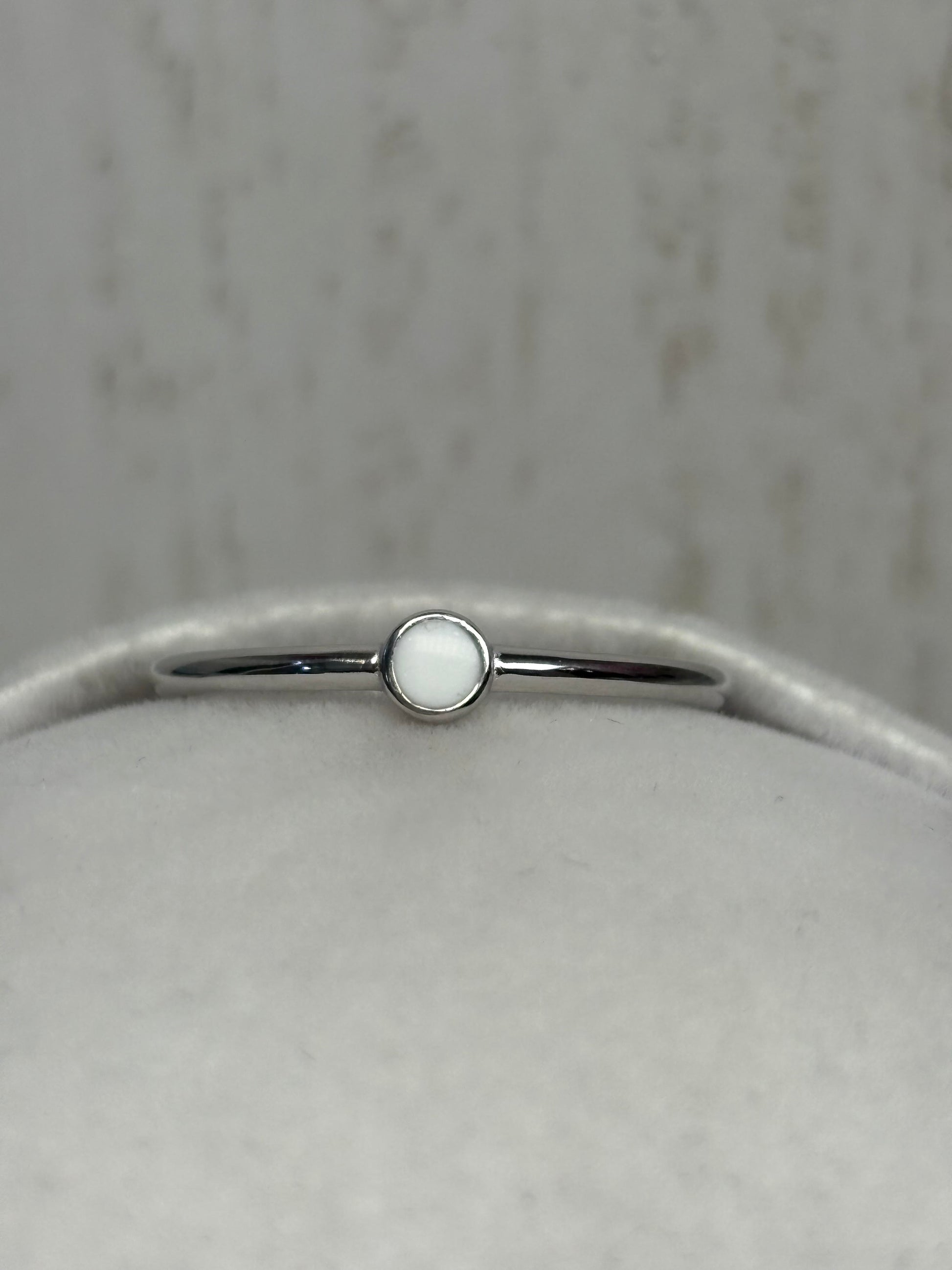 Beautiful, delicate ring with a smooth band, adorned with a small breastmilk stone insert in the center. Its name is a nod to the inner moon of the planet Saturn.