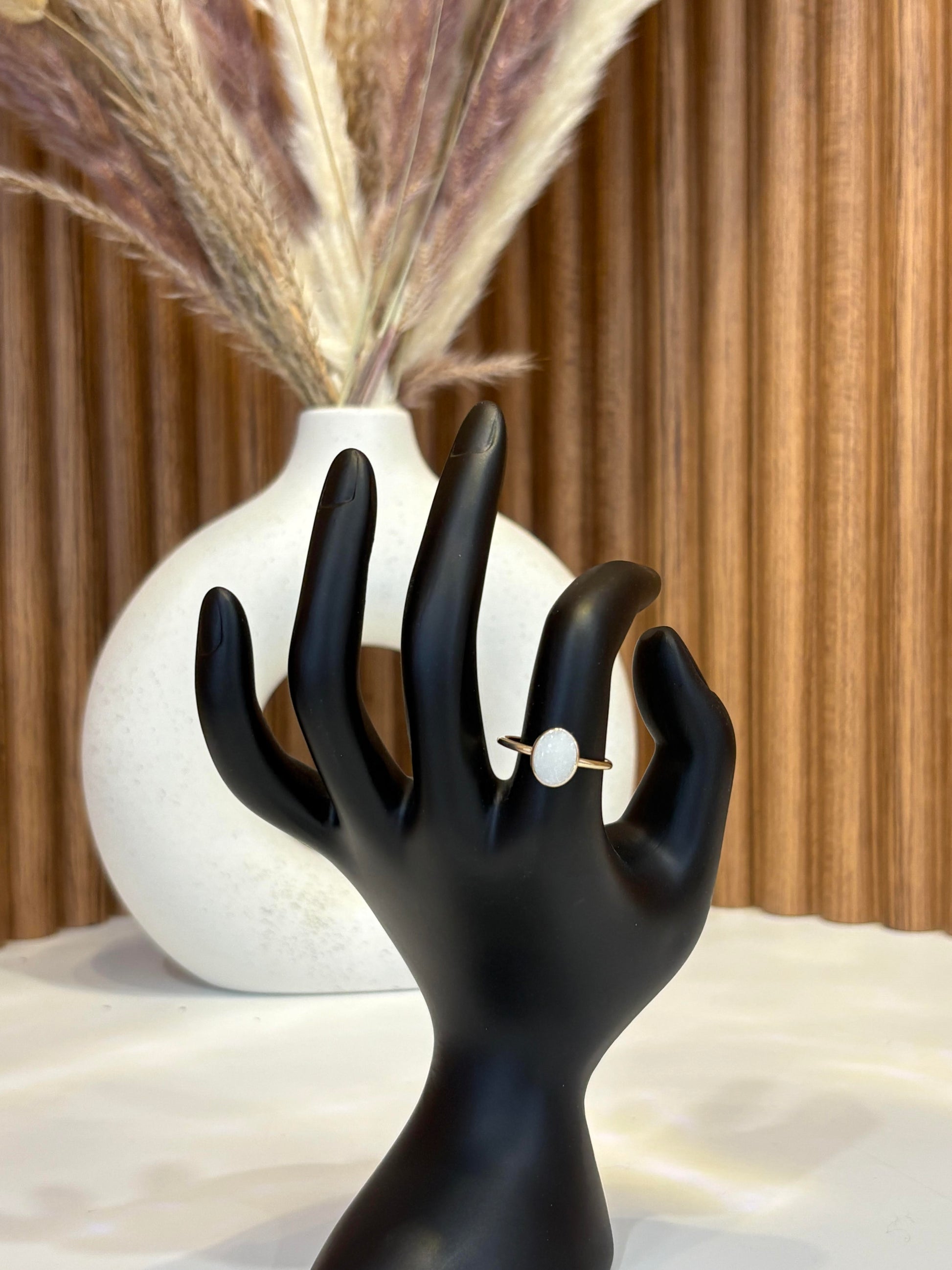 Je trouve personnellement joli de laisser plus d’Or visible ce qui donne une pierre plate et non bombée. Si tel est votre souhait, l’inscrire dans les notes du panier. Sinon elle sera crée bombée comme les autres créations ❤️