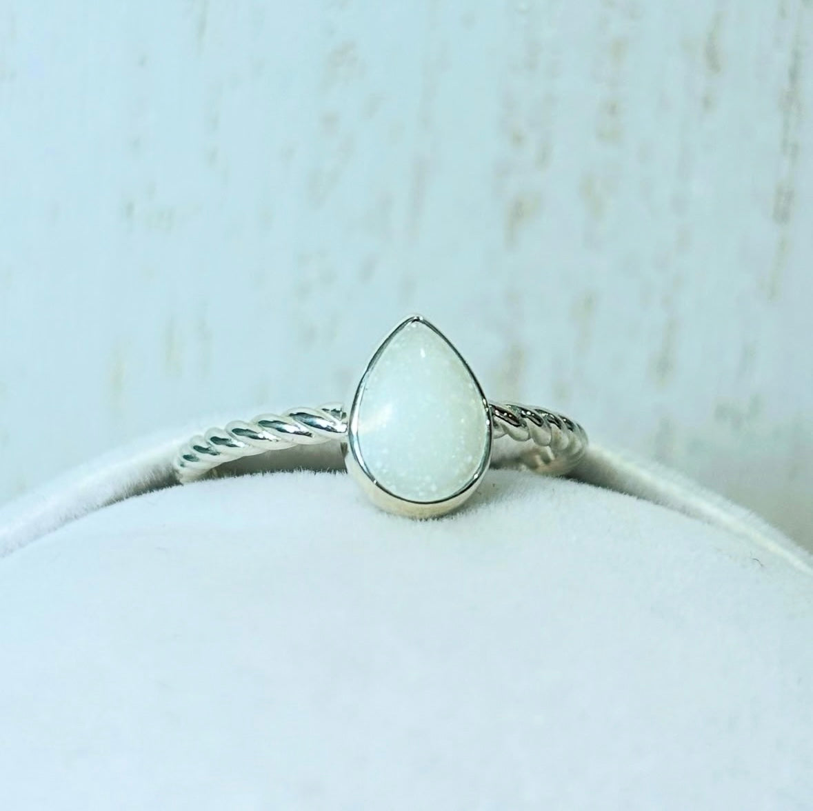 Argent 925; Anneau "Torsadé"; Lait maternel Fini Blanc Perlé