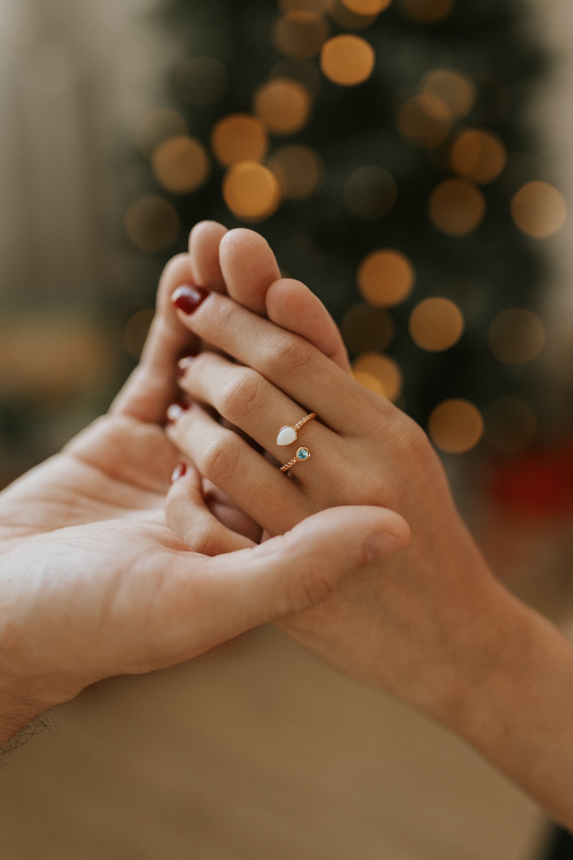 Magnifique bague ouverte en Or Solide 10K, ornée d’un zircon et d’une pierre de lait maternel de style "goutte".