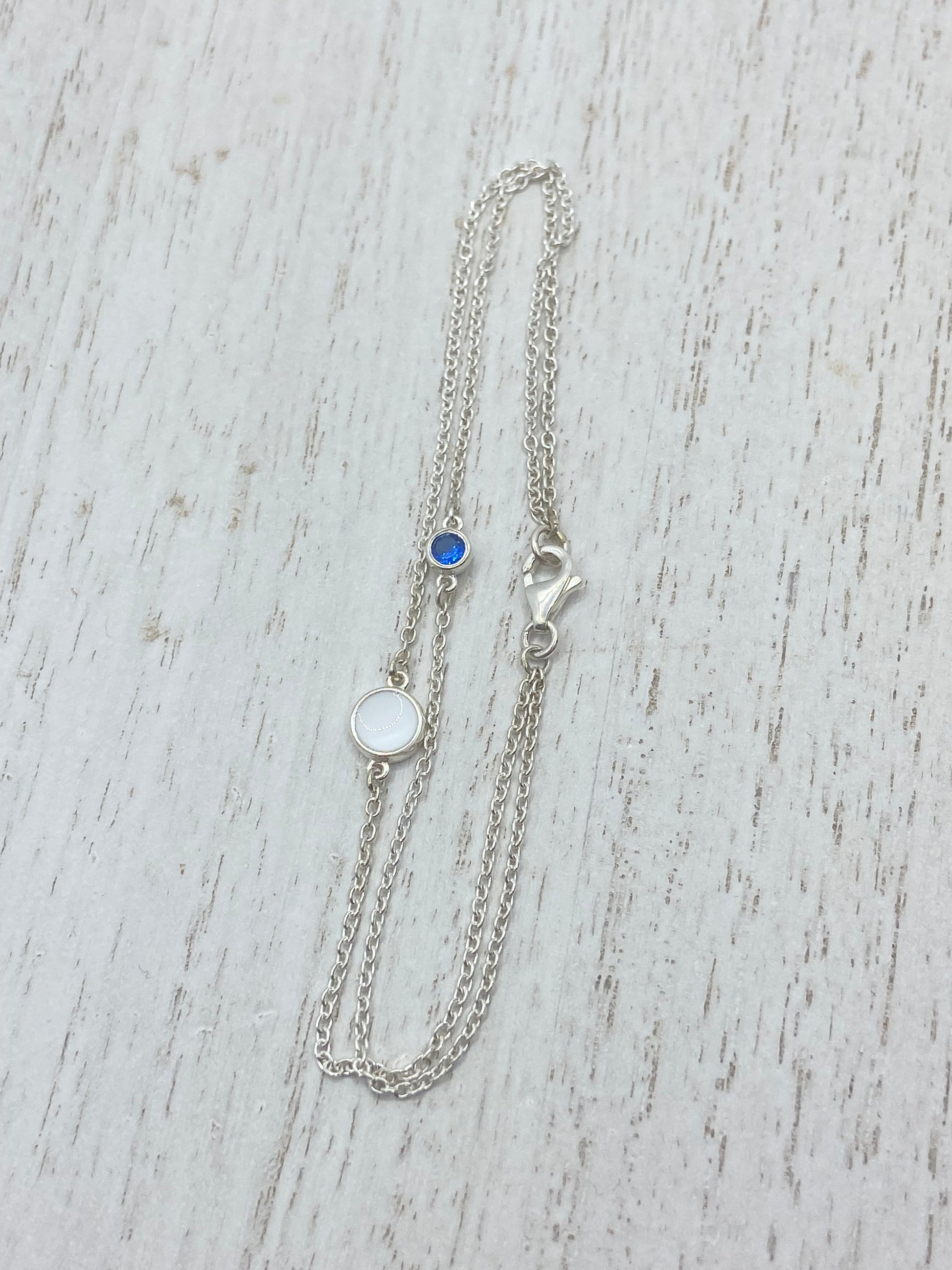 Bracelet en or 10ct, Lait maternel Fini "Blanc Pur" & Zircon couleur "Saphir/Septembre".