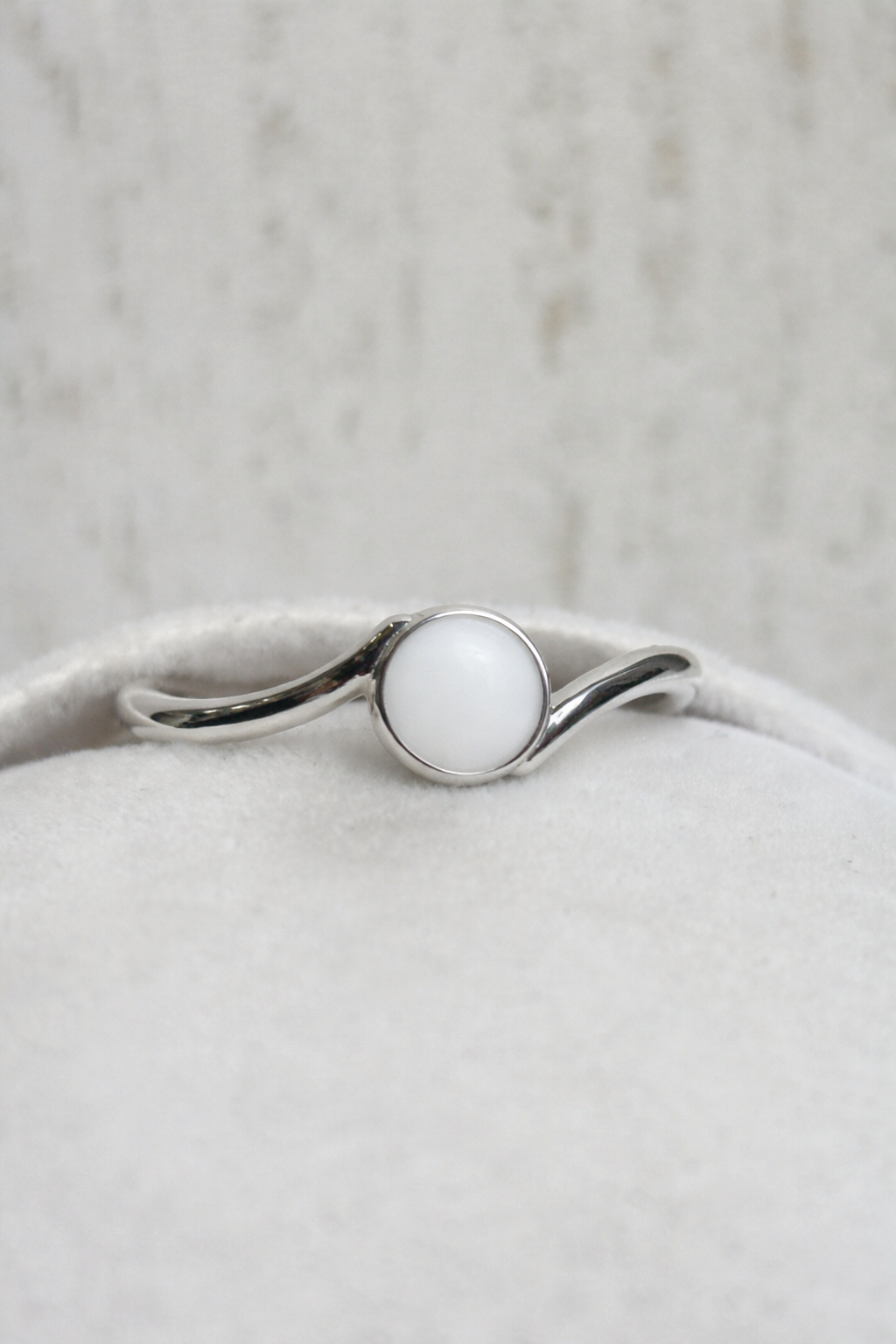 À l’origine de la collection Lunea, la bague du même nom se distingue par une forme ronde épurée, symbole d’équilibre et de douceur.
