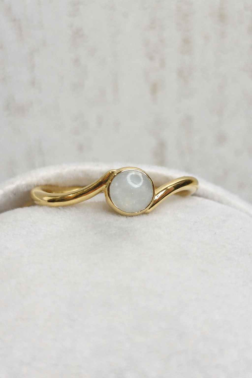 À l’origine de la collection Lunea, la bague du même nom se distingue par une forme ronde épurée, symbole d’équilibre et de douceur.