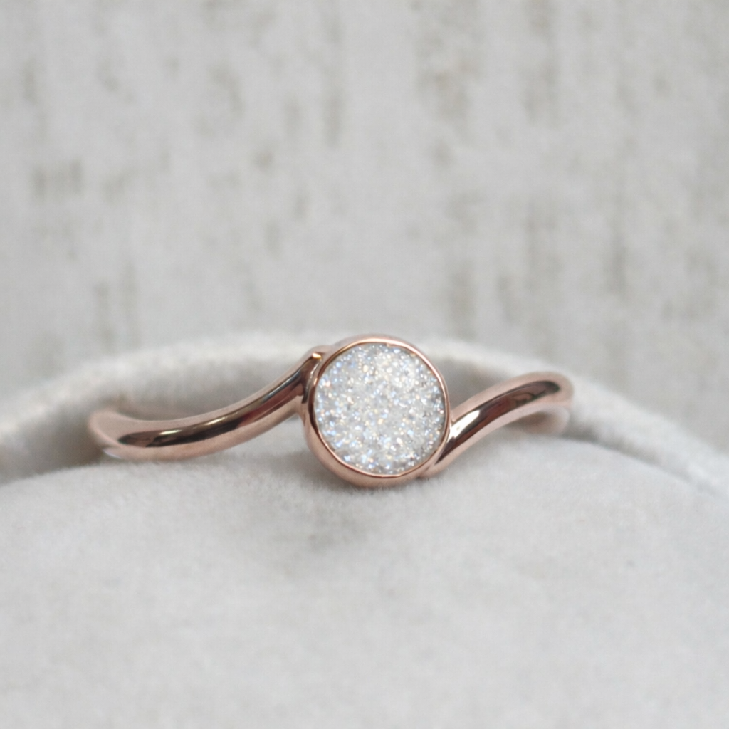 À l’origine de la collection Lunea, la bague du même nom se distingue par une forme ronde épurée, symbole d’équilibre et de douceur.